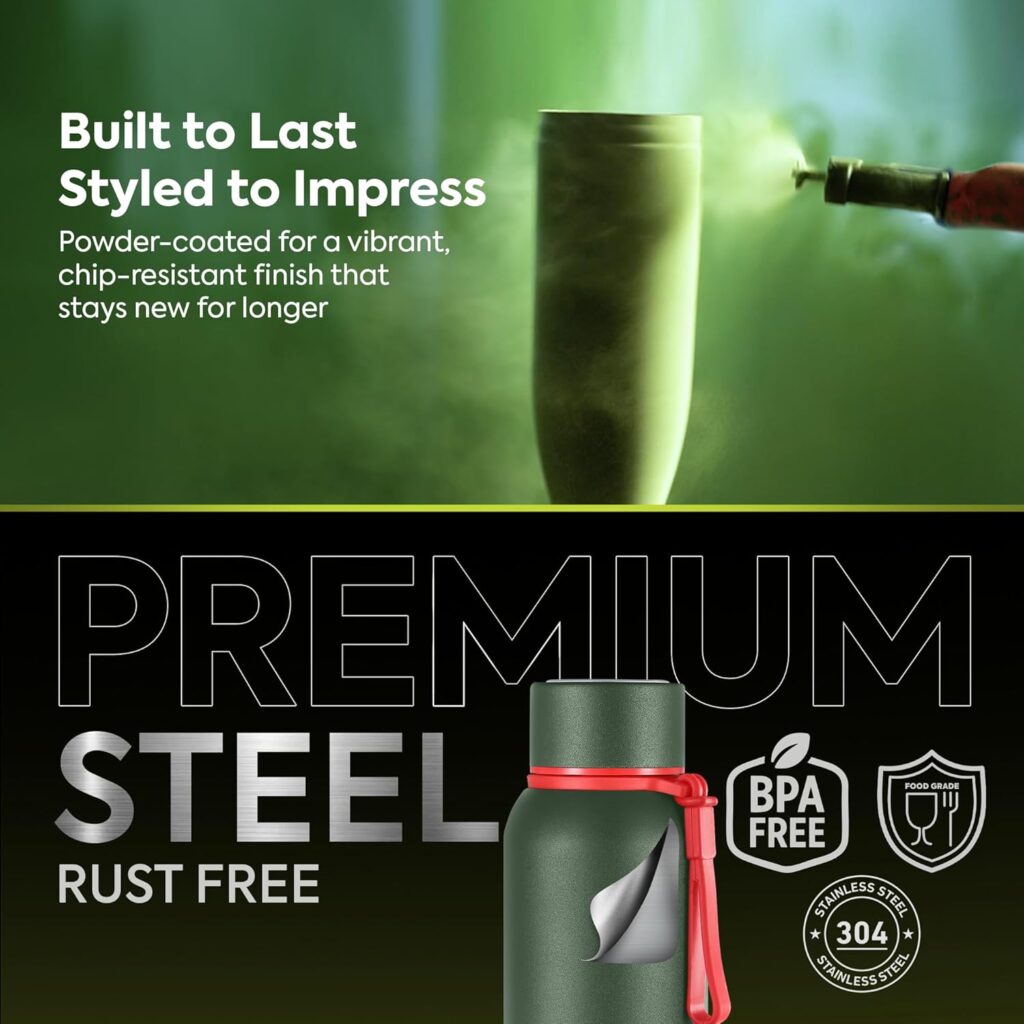 PREMIUM QUALITY MATERIAL: Made with high-grade SS304 stainless steel flask material that resists rust, odor, and bacteria. Your drinks stay fresh, safe, and pure every time